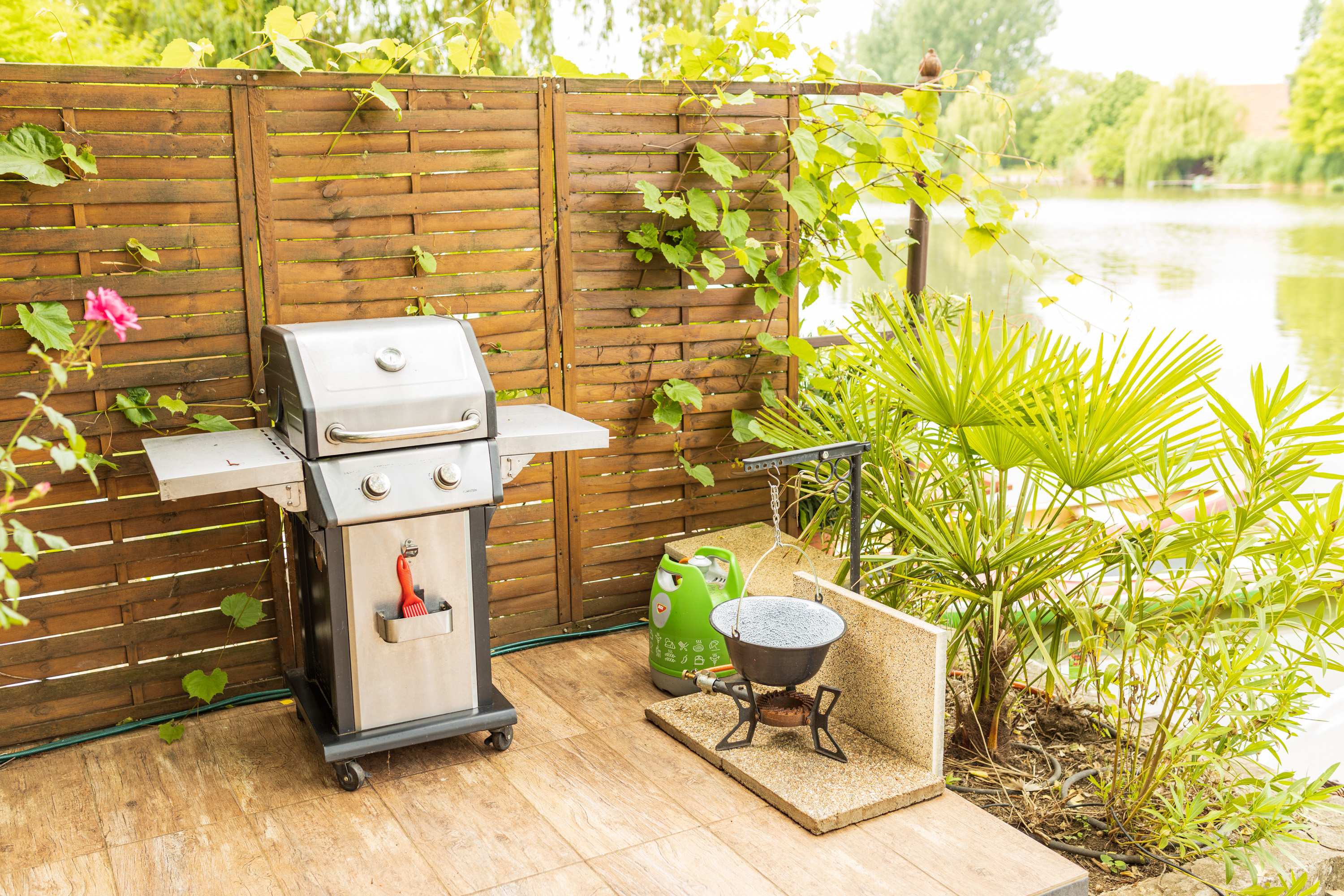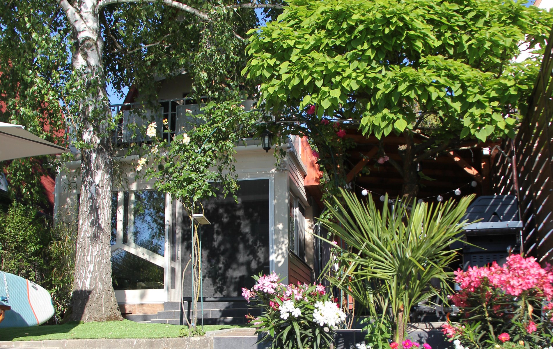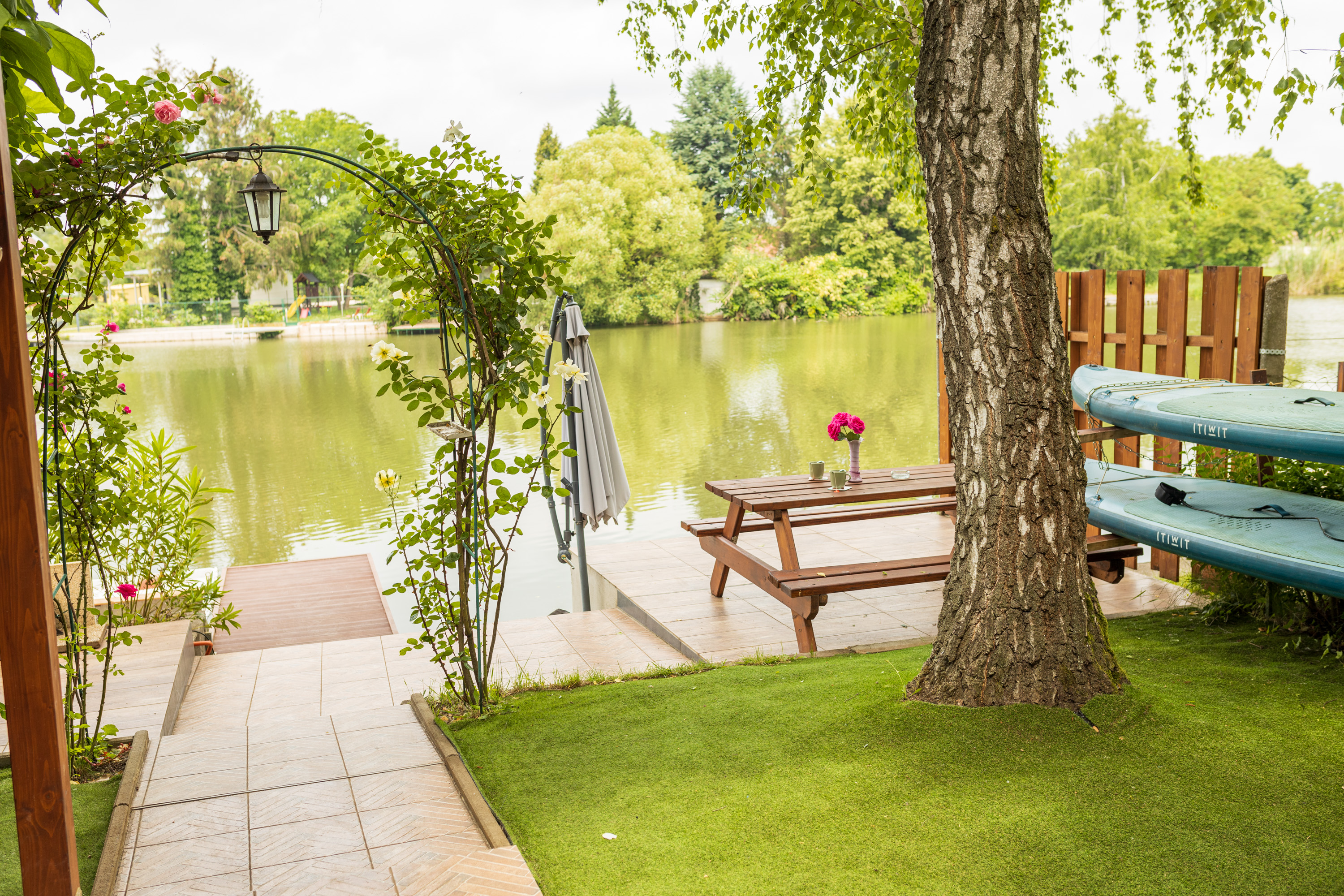 Jakuzzi (4 fős), csónak elektromos motorral, 2 sup, 2 bicikli, darts, gázgrill és bogrács.